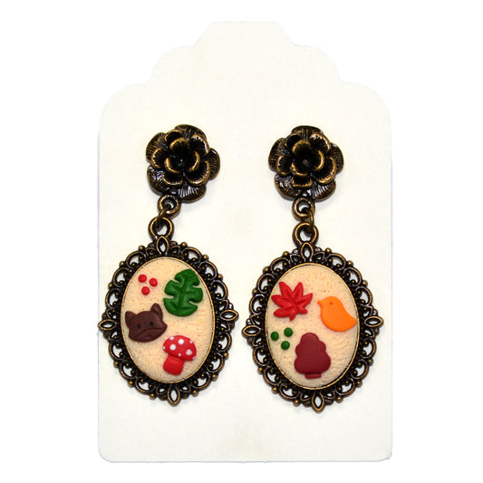 Κρεμαστά βίνταζ οβάλ σκουλαρίκια με φθινοπωρινά μίνι στοιχεία