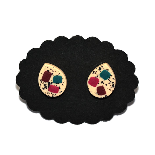 Καρφωτά σκουλαρίκια τετράγωνα μπεζ πιτσιλωτά με μπορντό φούξια γαλαζοπράσινο