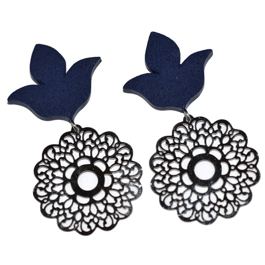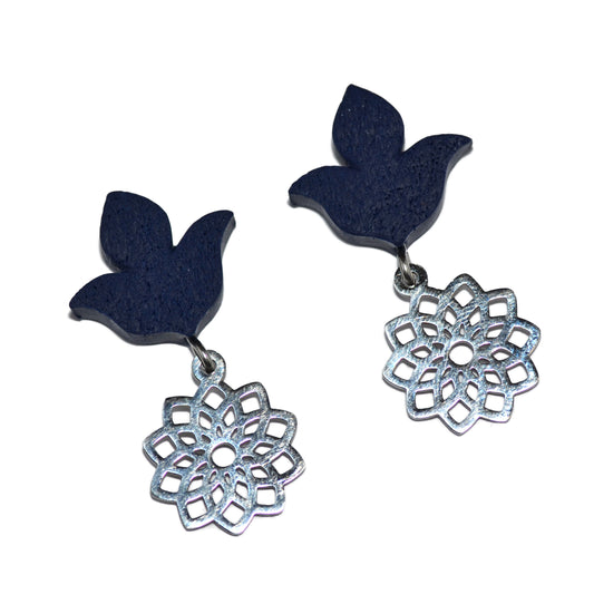 Καρφωτά σκουλαρίκια μπλε μαρίν λουλουδάκια από πολυμερικό πηλό