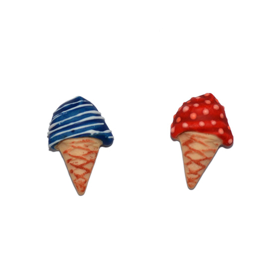 Σκουλαρίκια καρφωτά ανόμοια χωνάκι παγωτό μπλε κόκκινο
