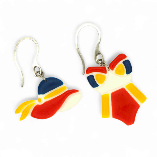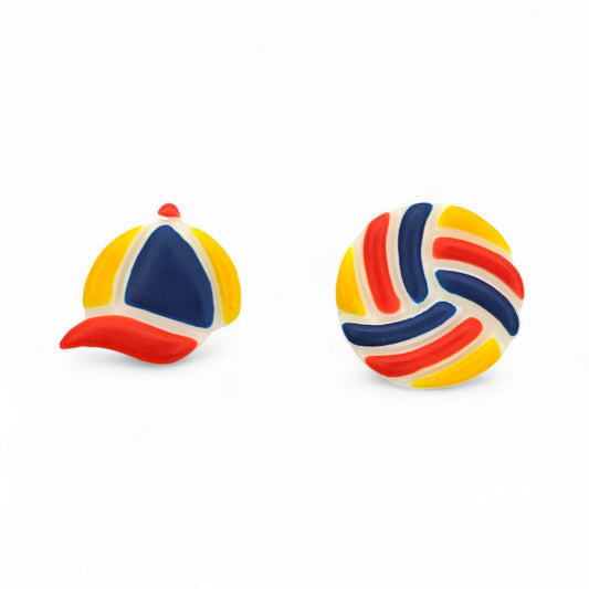 Σκουλαρίκια καρφωτά ανόμοια καπέλο και μπάλα beach volley από πολυμερικό πηλό