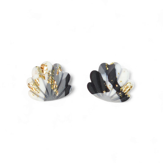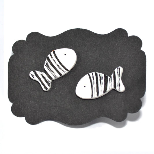 Ανόμοια καρφωτά στρογγυλά σκουλαρίκια ασπρόμαυρα ψαράκια με πολυμερικό πηλό