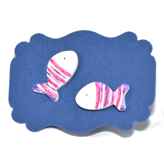 Σκουλαρίκια καρφωτά ψαράκια ροζ μωβ ριγέ