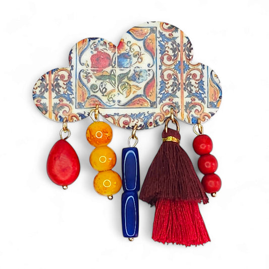 Μακρύ κολιέ σύννεφο με μοτίβο πολύχρωμα πλακάκια και διάφορα κρεμαστά στοιχεία