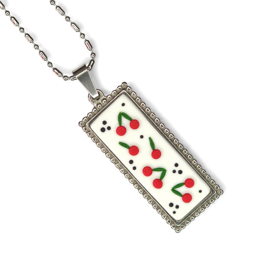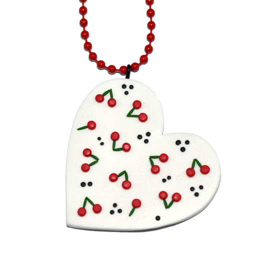 Μακρύ κολιέ μεγάλη καρδιά με κερασάκια σε λευκό φόντο