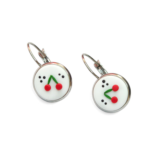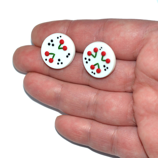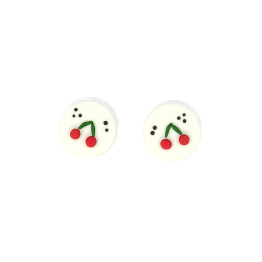 Καρφωτά σκουλαρίκια στρογγυλά κερασάκια σε λευκό φόντο