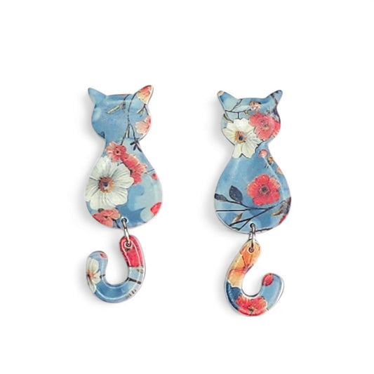 Σκουλαρίκια καρφωτά γάτες με τεχνική μεταφοράς εικόνας σε πολυμερικό πηλό - πρωτότυπο δώρο για κτηνίατρο