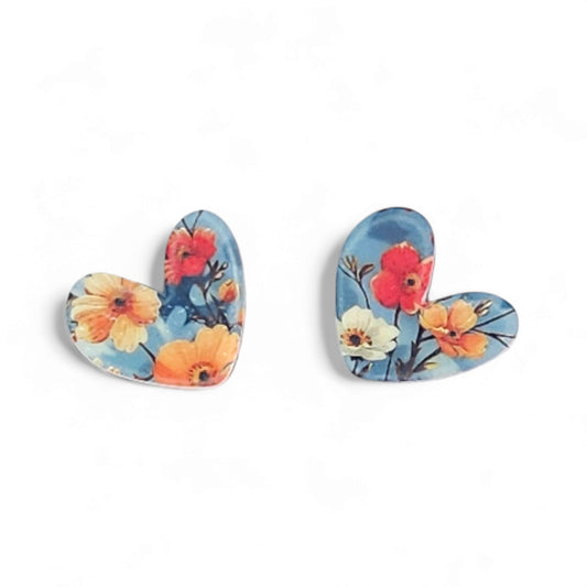 Καρφωτά σκουλαρίκια καρδιές με τεχνική μεταφοράς εικόνας σε πολυμερικό πηλό