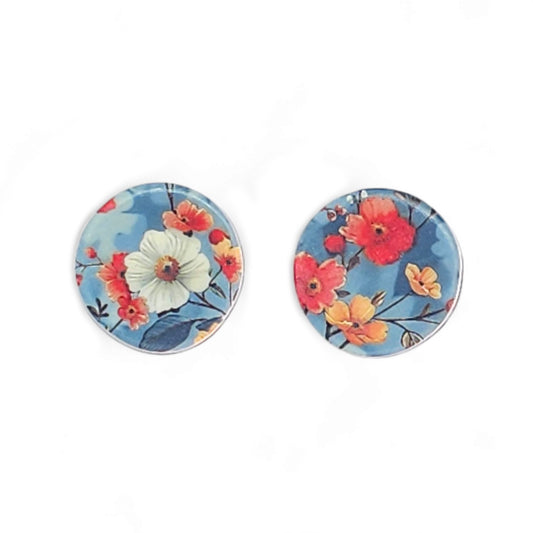 Καρφωτά σκουλαρίκια στρογγυλά με τεχνική μεταφοράς εικόνας σε πολυμερικό πηλό