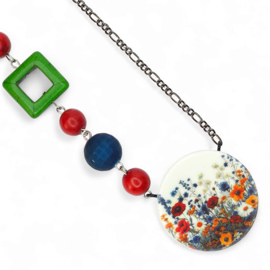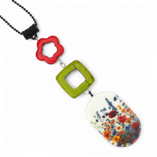 Μακρύ πολύχρωμο κολιέ με μοτίβο λουλούδια του αγρού από πολυμερικό πηλό