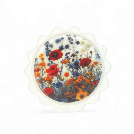 Στρογγυλή καρφίτσα με μοτίβο λουλούδια του αγρού από πολυμερικό πηλό