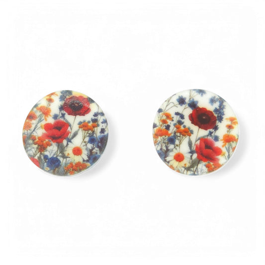 Καρφωτά σκουλαρίκια στρογγυλά με μοτίβο λουλούδια του αγρού από πολυμερικό πηλό