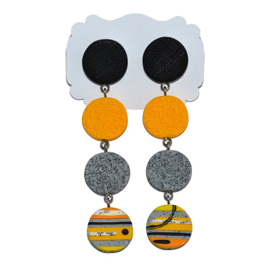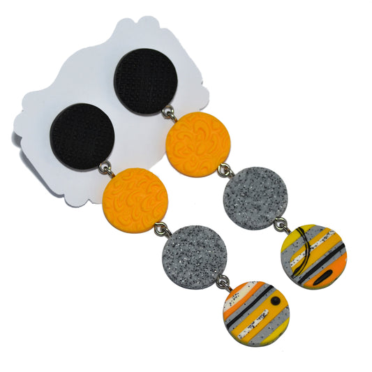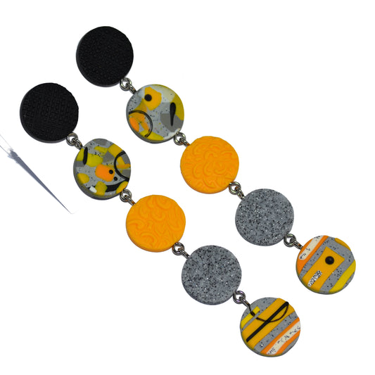 Μακριά σκουλαρίκια με τέσσερις διαφορετικούς κύκλους σε μαύρο κίτρινο και γκρι