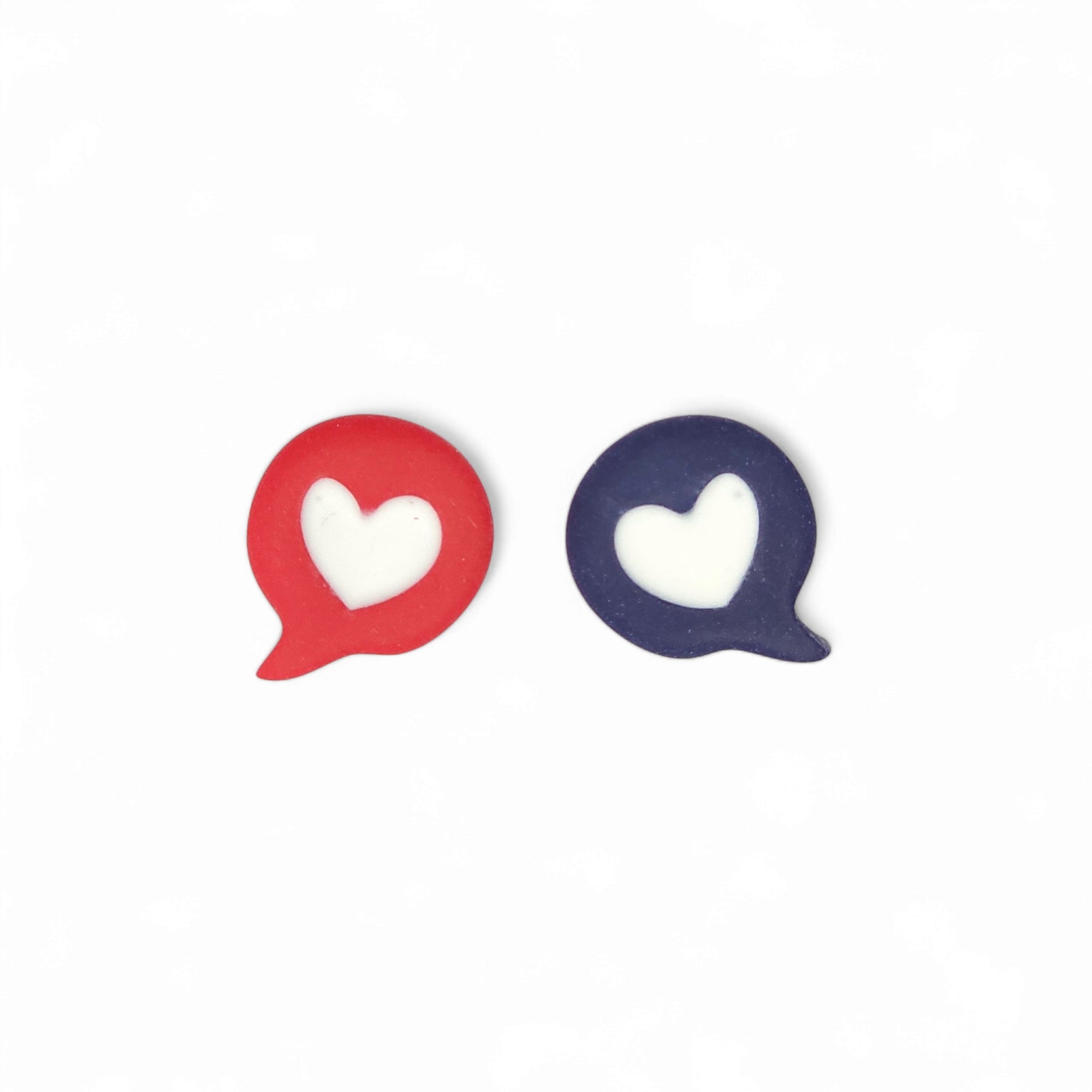 Ανόμοια καρφωτά σκουλαρίκια μηνύματα με καρδούλες μπλε και κόκκινη από πολυμερικό πηλό.