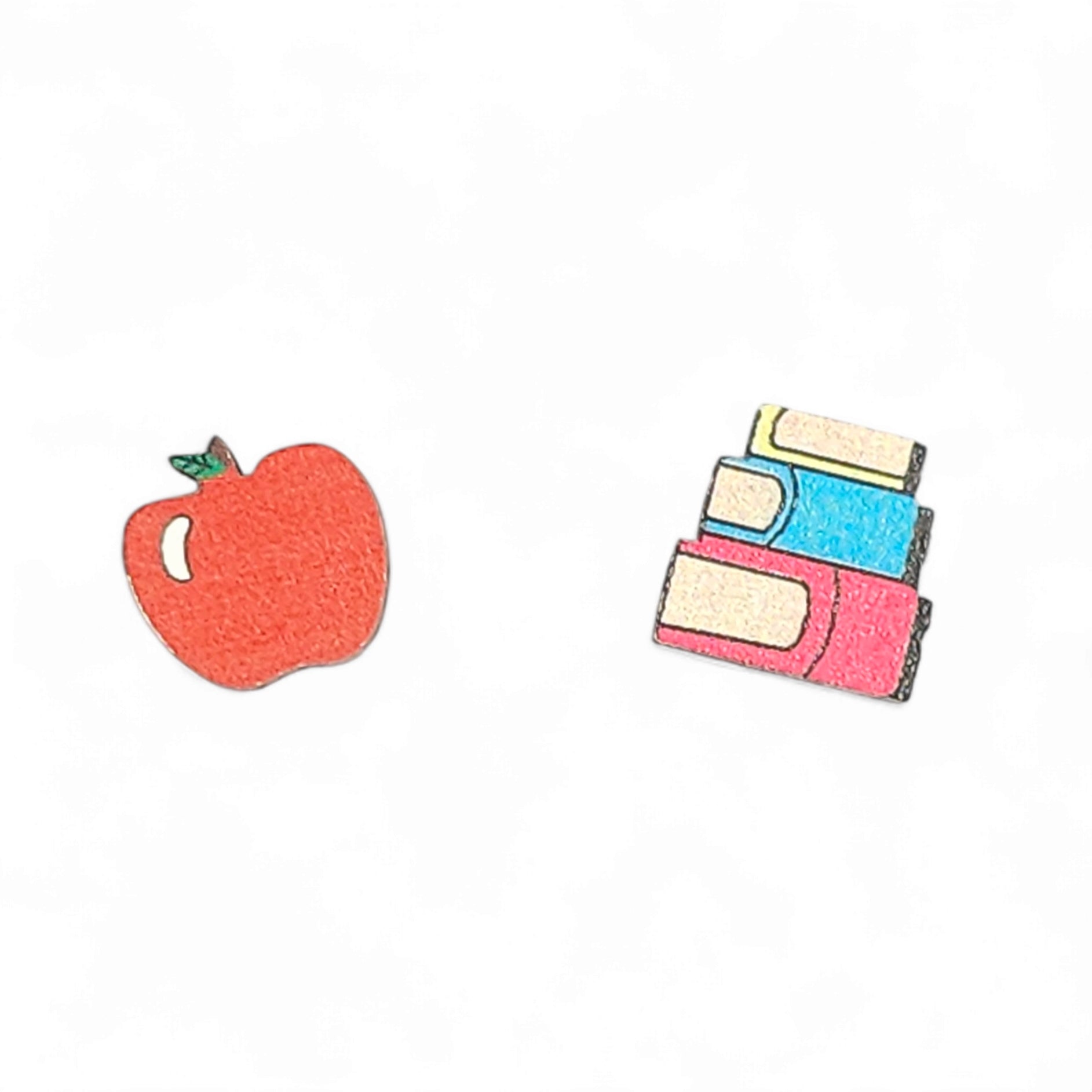 Ανόμοια καρφωτά σκουλαρίκια ξύλινα μήλο και βιβλία