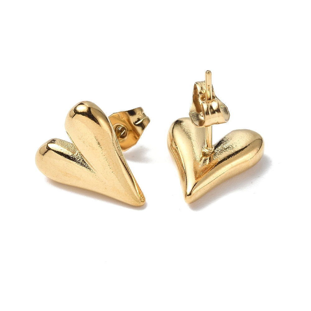 Ατσάλινα σκουλαρίκια καρδιές λιγάκι φουσκωτές, επιχρυσωμένες.
