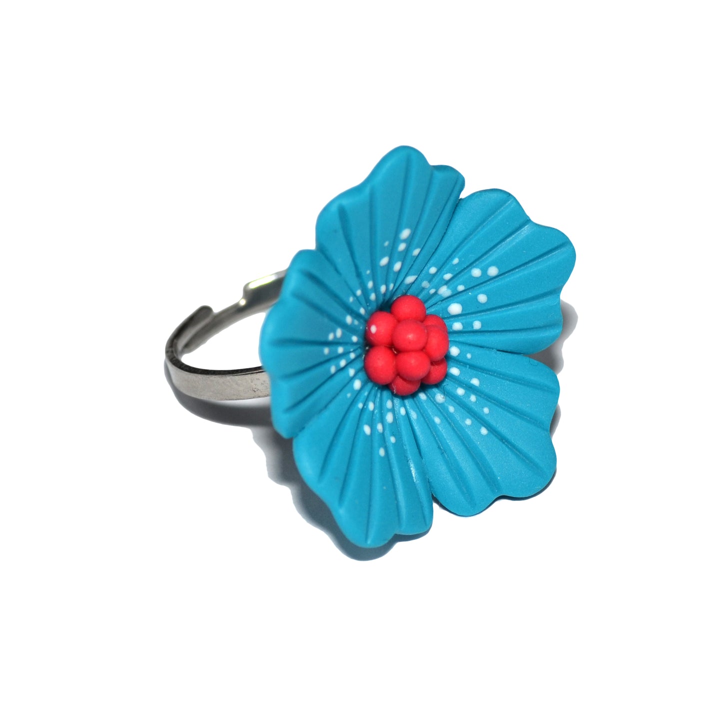 Δαχτυλίδι λουλούδι τυρκουάζ από πολυμερικό πηλό με ατσάλινη βάση