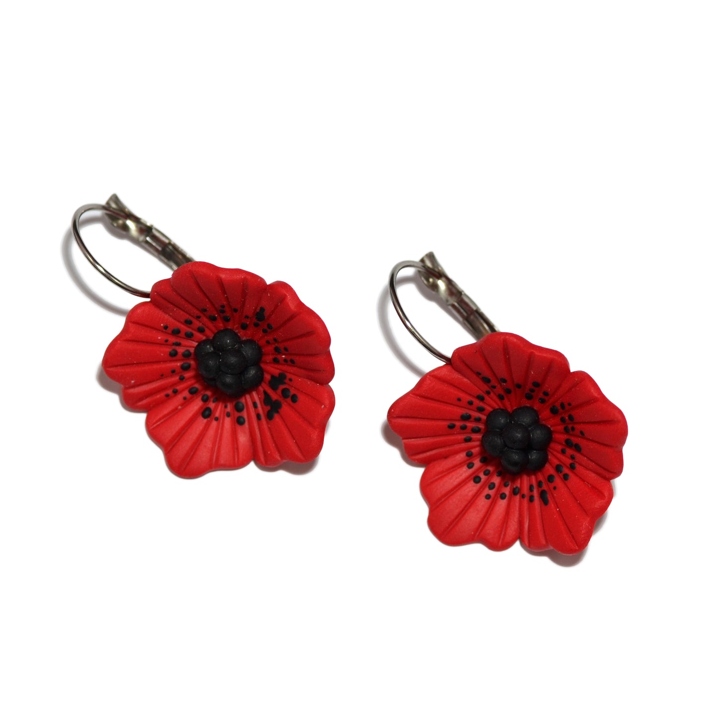 Γλυπτές παπαρούνες από πολυμερικό πηλό, λίγο κρεμαστές κάτω από το αυτί με υποαλλεργικά γαντζάκια από ανοξείδωτο ατσάλι. Απ'τα πολυαγαπημένα σχέδια του Kaselaki ❤ Με διπλό ψήσιμο για ενσωμάτωση των γάντζων για να σας συντροφεύει αυτό το ζευγάρι για δεκαετίες!