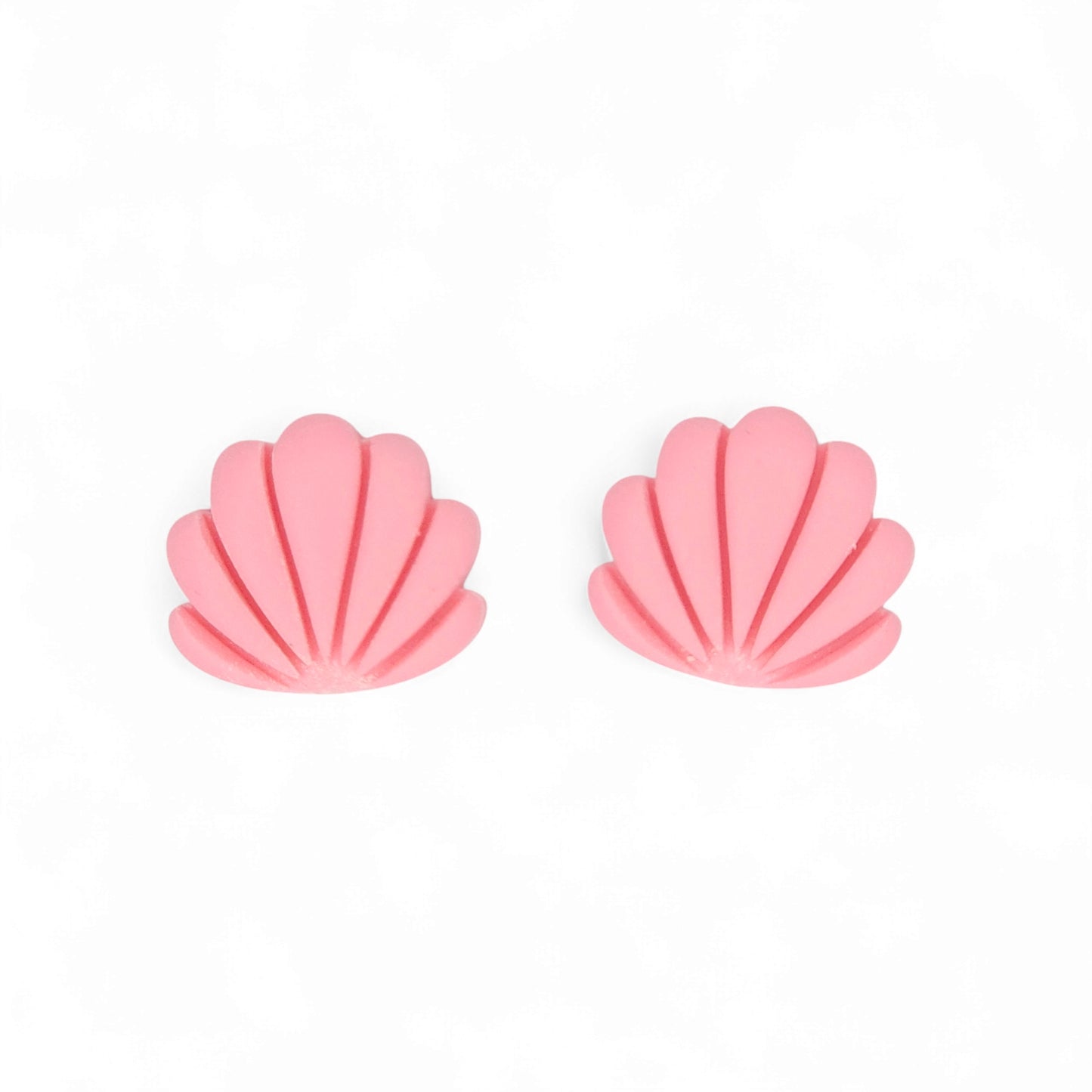 Καλοκαιρινά παιδικά καρφωτά σκουλαρίκια ροζ κοχύλια χτένια από πολυμερικό πηλό