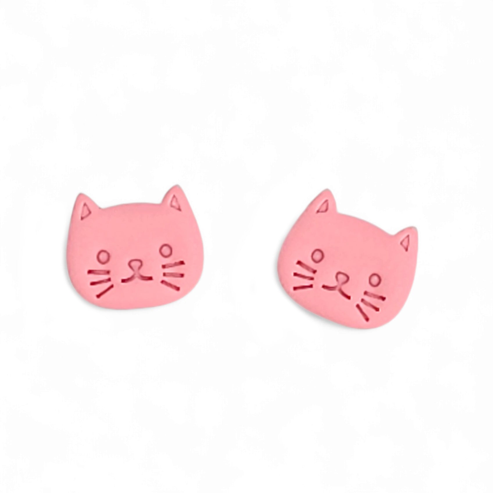 Καρφωτά σκουλαρίκια γατάκια ροζ από πολυμερικό πηλό.