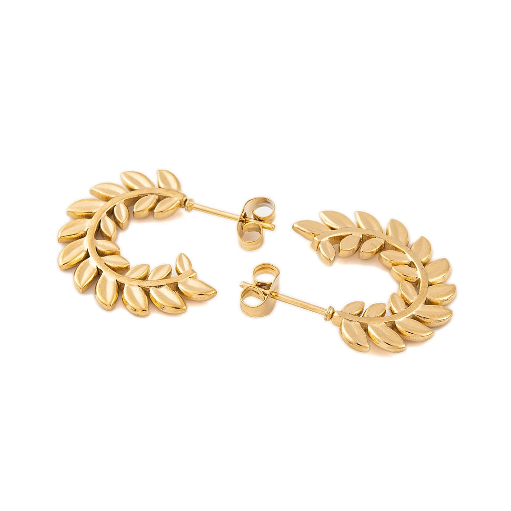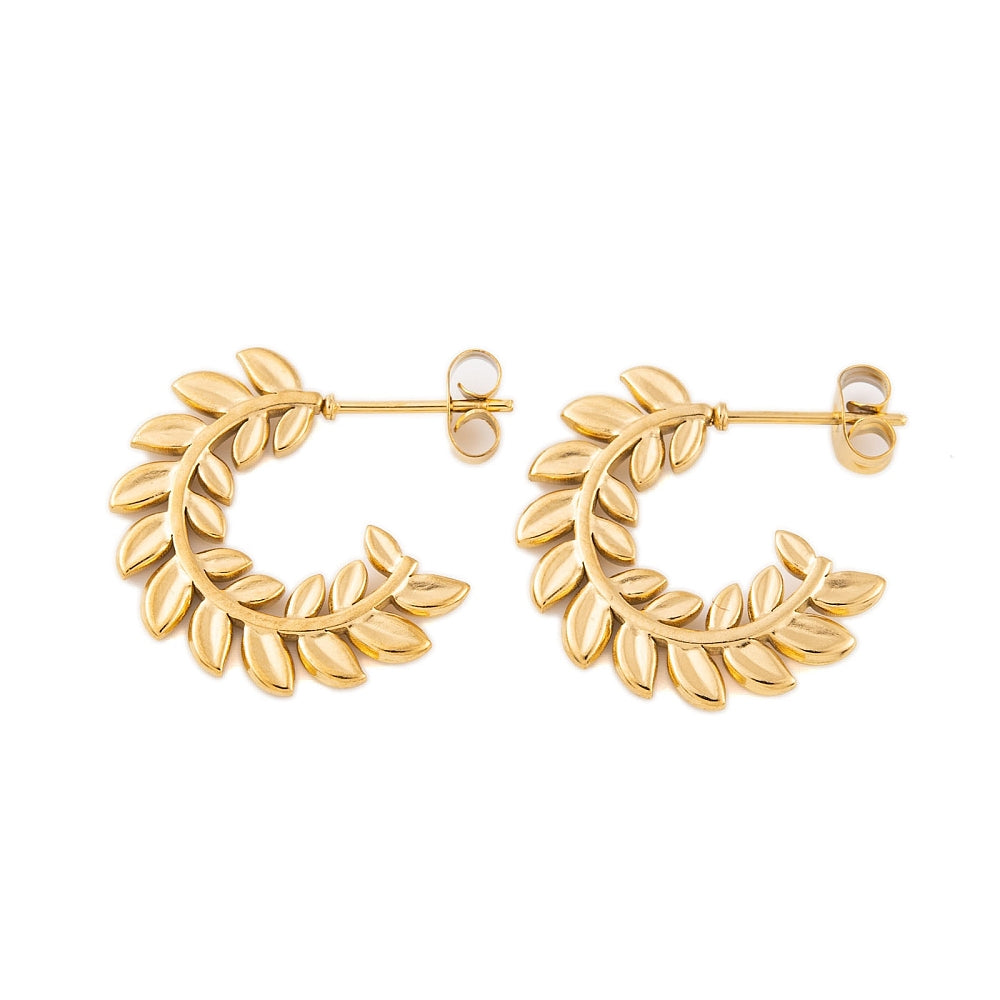 Καρφωτά σκουλαρίκια κρίκοι με φύλλα από επιχρυσωμένο ανοξείδωτο ατσάλι.