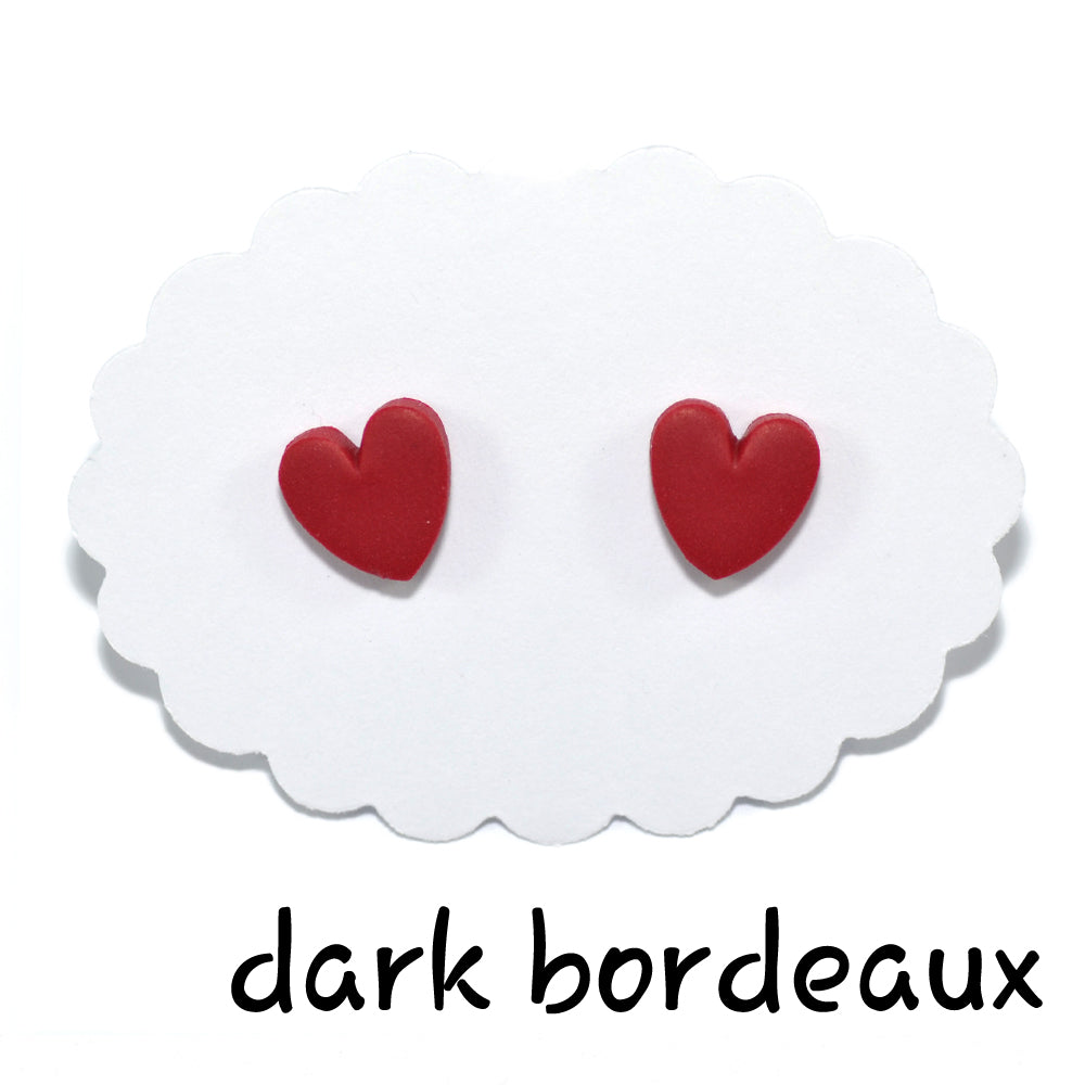 Καρφωτά σκουλαρίκια σκούρο μπορντό καρδούλες από πολυμερικό πηλό.