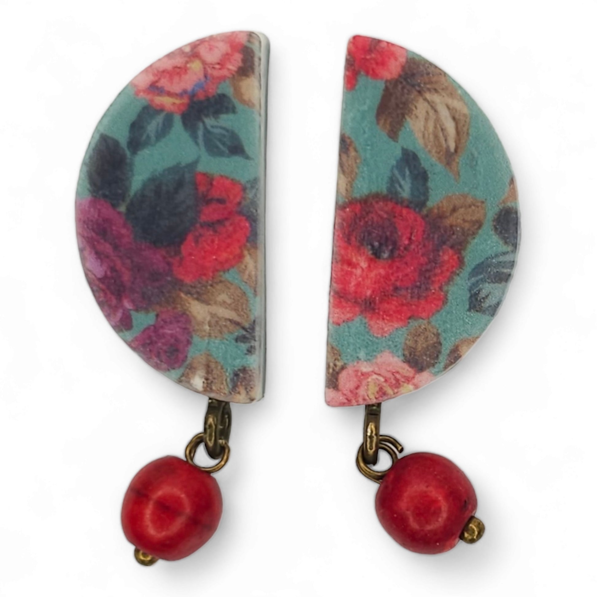 Καρφωτά σκουλαρίκια της συλλογής Vintage roses με κόκκινες πέτρες αχάτη.