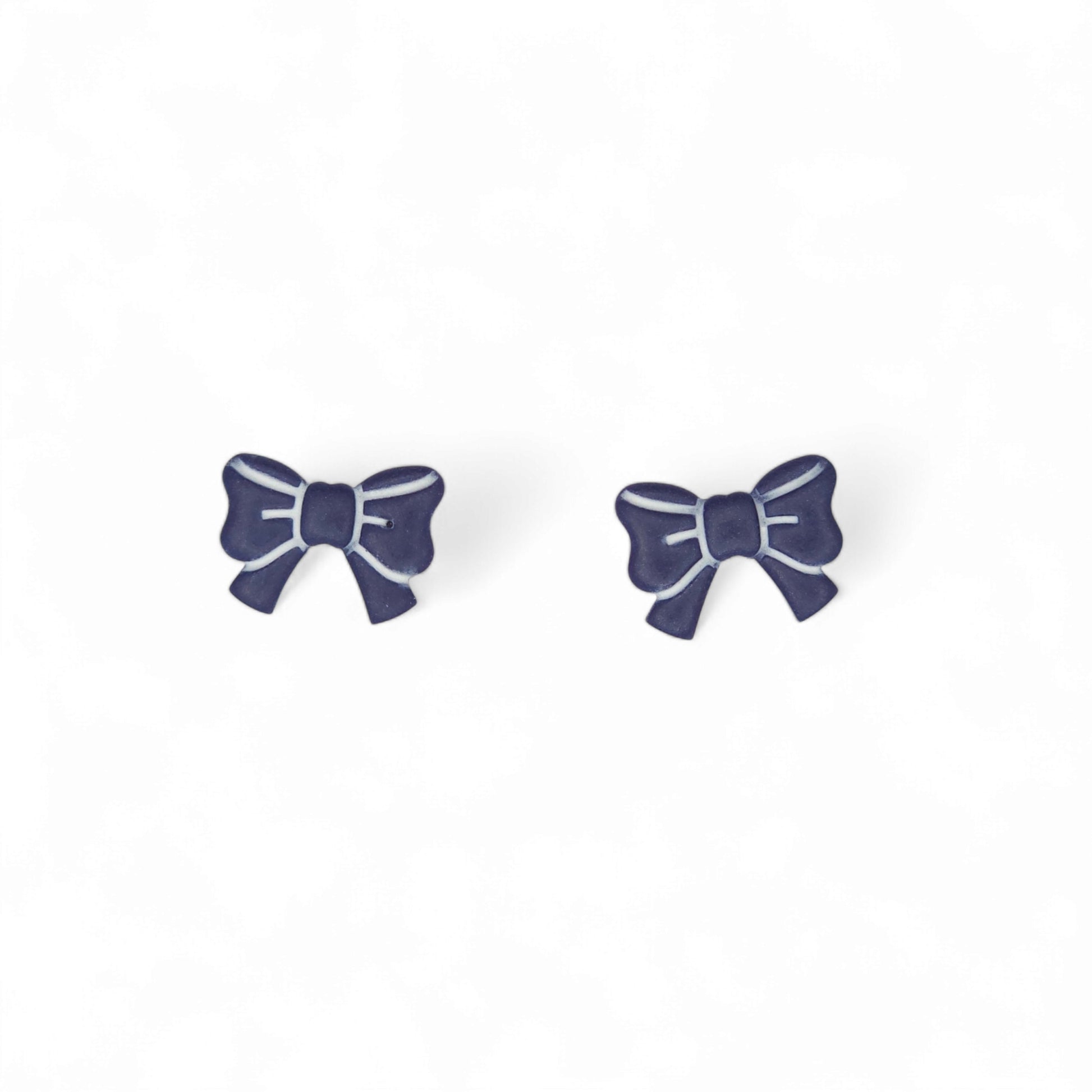 Καρφωτά σκουλαρίκια φιογκάκια μπλε μαρίν από πολυμερικό πηλό.