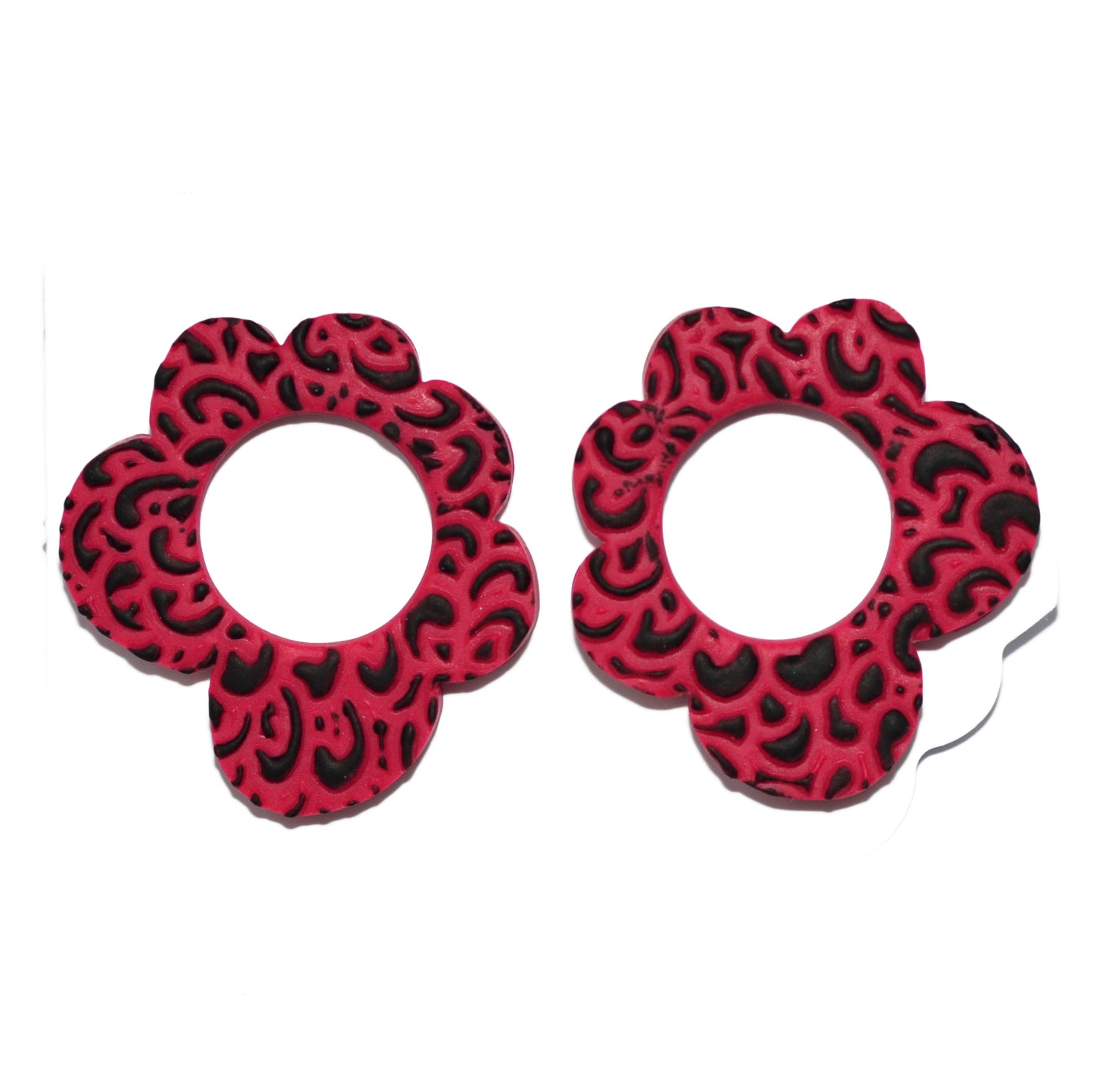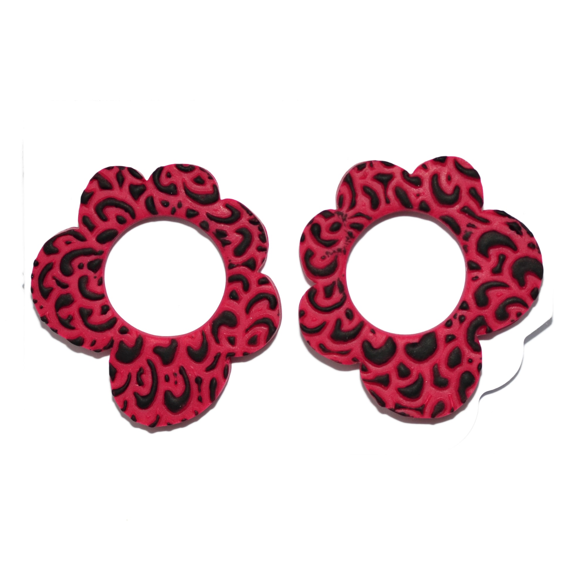 Καρφωτά σκουλαρίκια φούξια με μαύρο άνιμαλ πριντ από πολυμερικό πηλό.