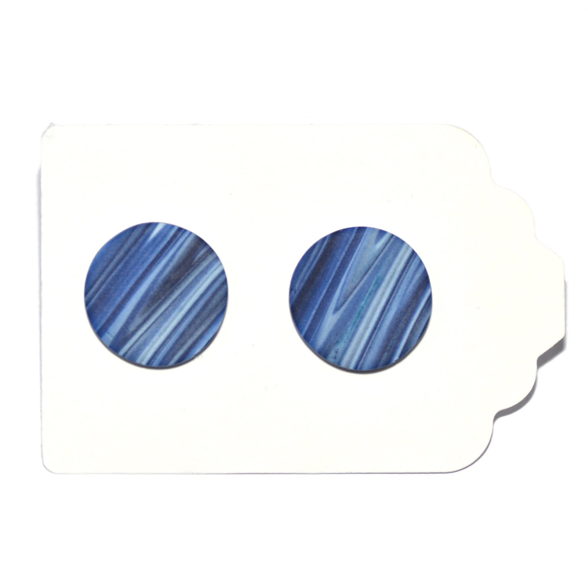 Καρφωτά στρόγγυλα σκουλαρίκια μπλε ριγέ.