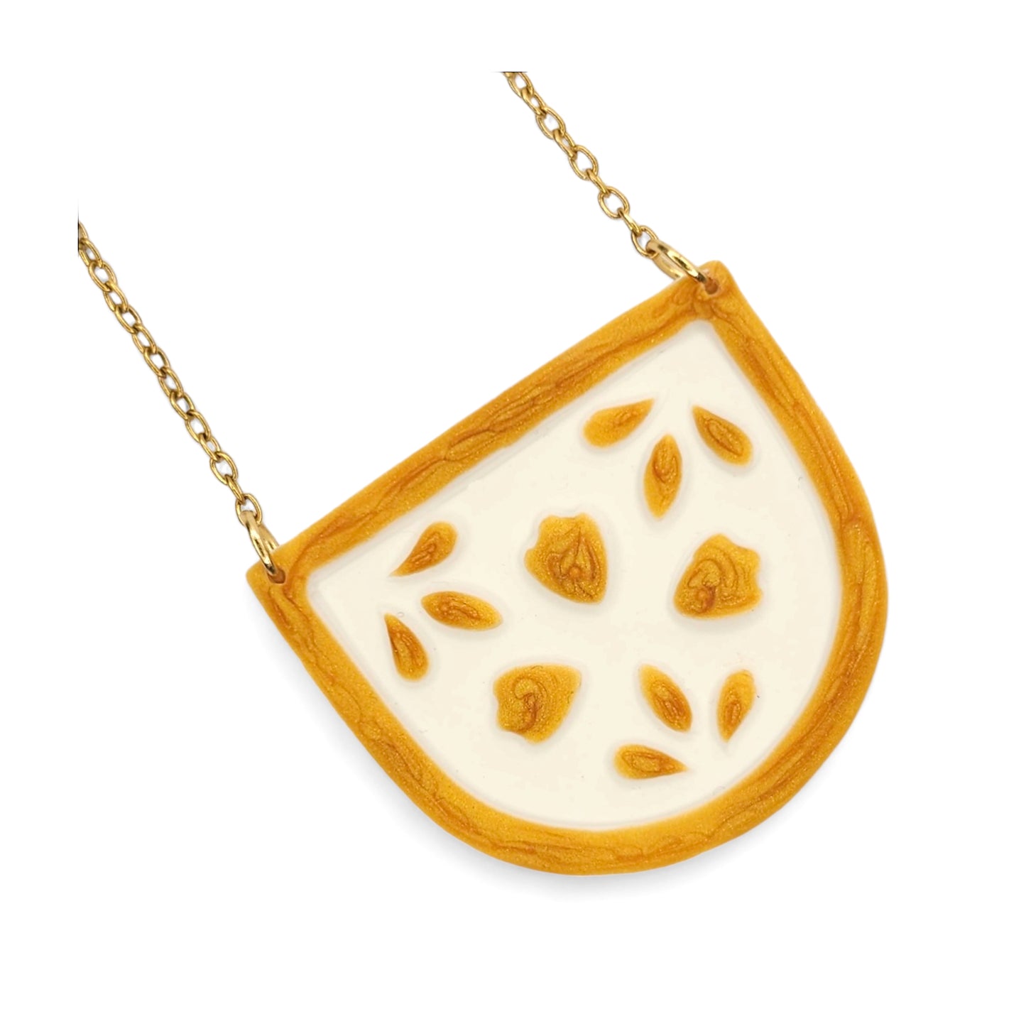 Κομψό κολιέ λευκό με χρυσές λεπτομέρειες από πολυμερικό πηλό και υποαλλεργική επιχρυσωμένη ατσάλινη λεπτή αλυσίδα.