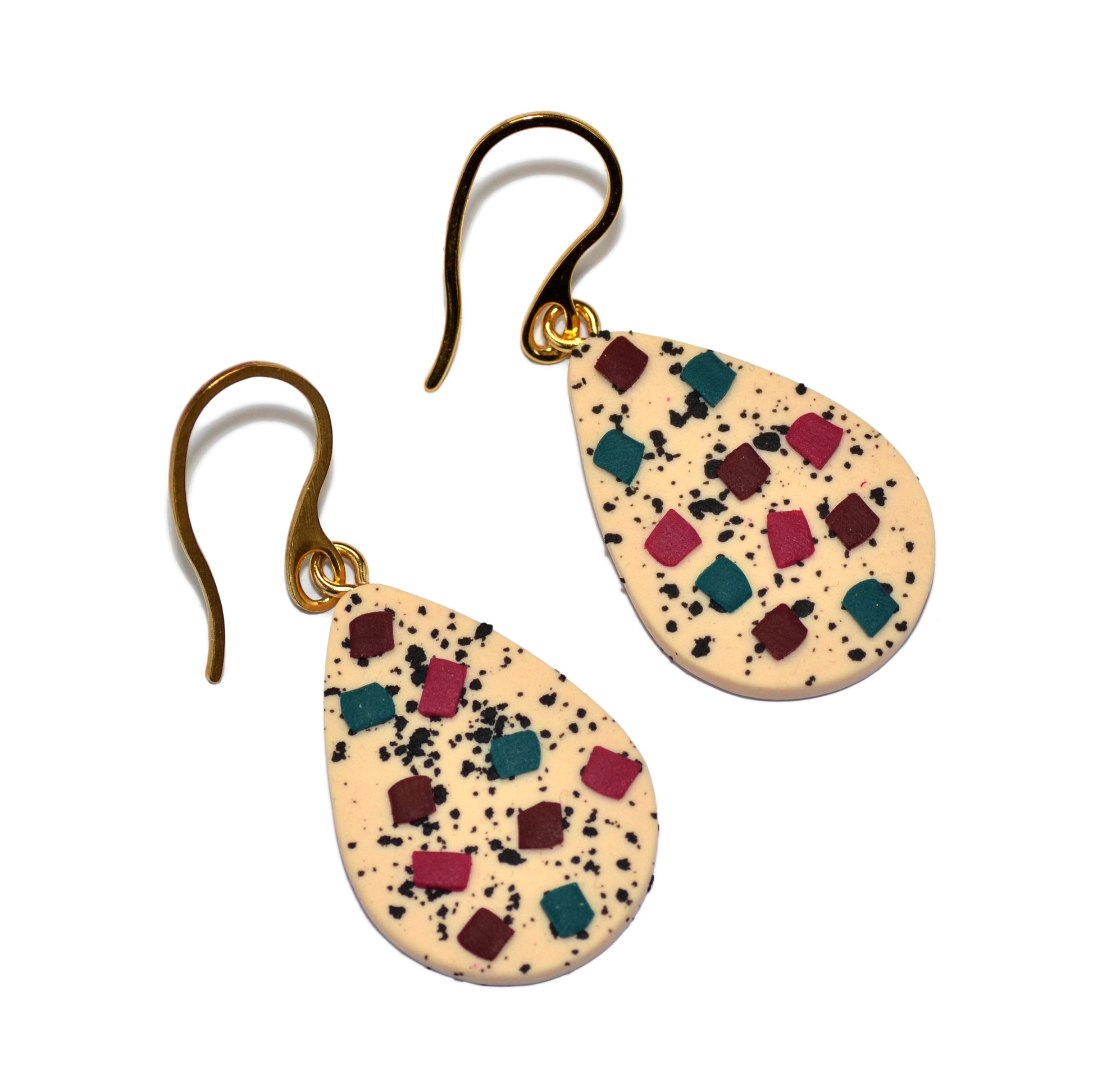 Κρεμαστά σκουλαρίκια δάκρυα μπεζ πιτσιλωτό με μπορντό φούξια γαλαζοπράσινο