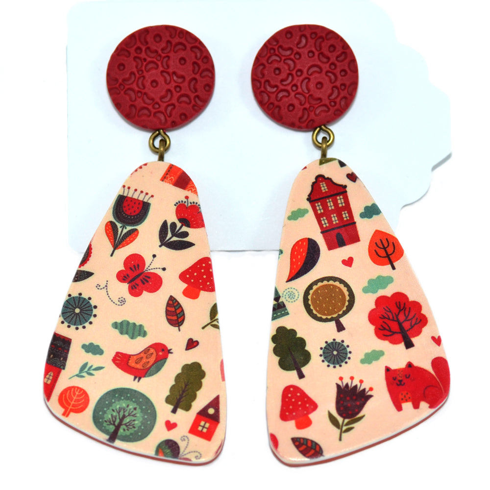 Κρεμαστά σκουλαρίκια με folk art εικαστικό.