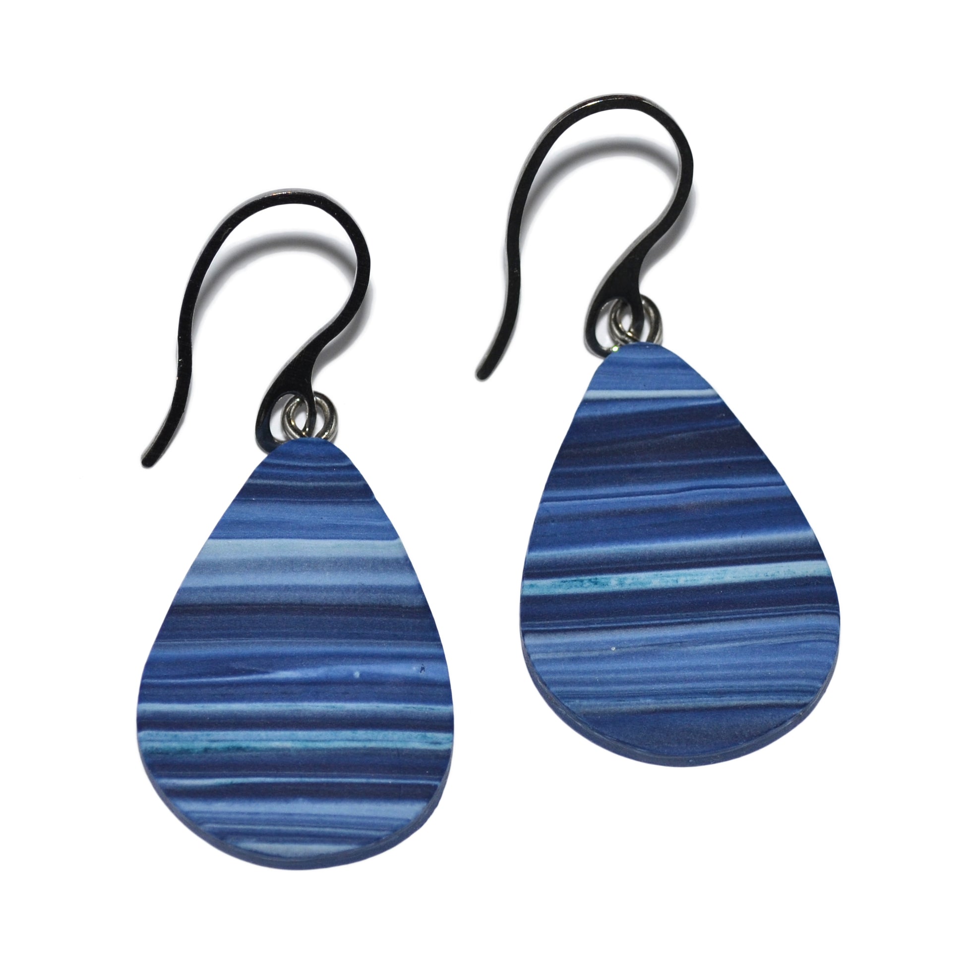 Κρεμαστά σκουλαρίκια μπλε ριγέ δάκρυα με υποαλλεργικά γαντζάκια από ανοξείδωτο ατσάλι.