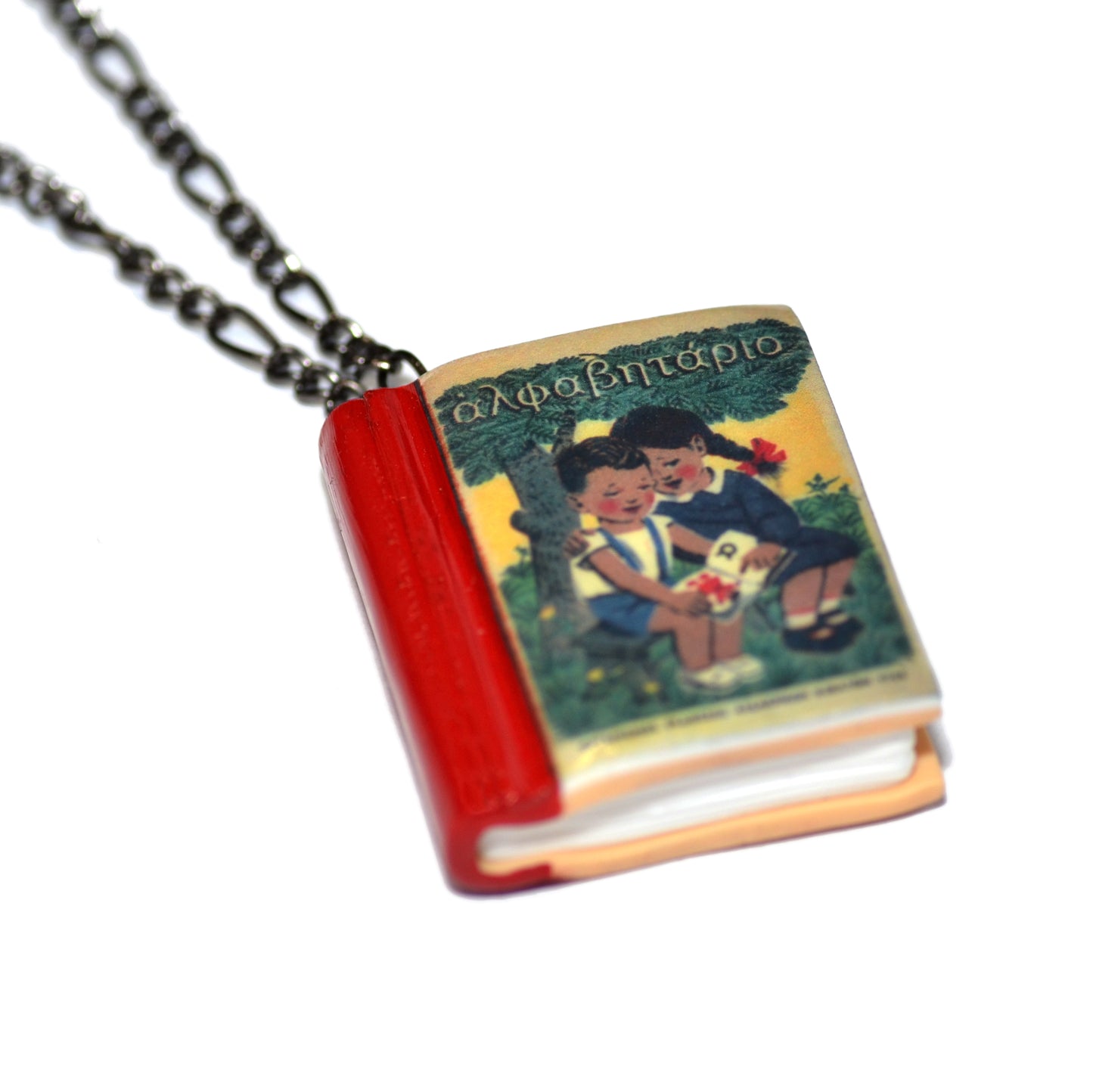 Μακρύ κολιέ αλφαβητάριο βιβλίο δώρο για δασκάλα