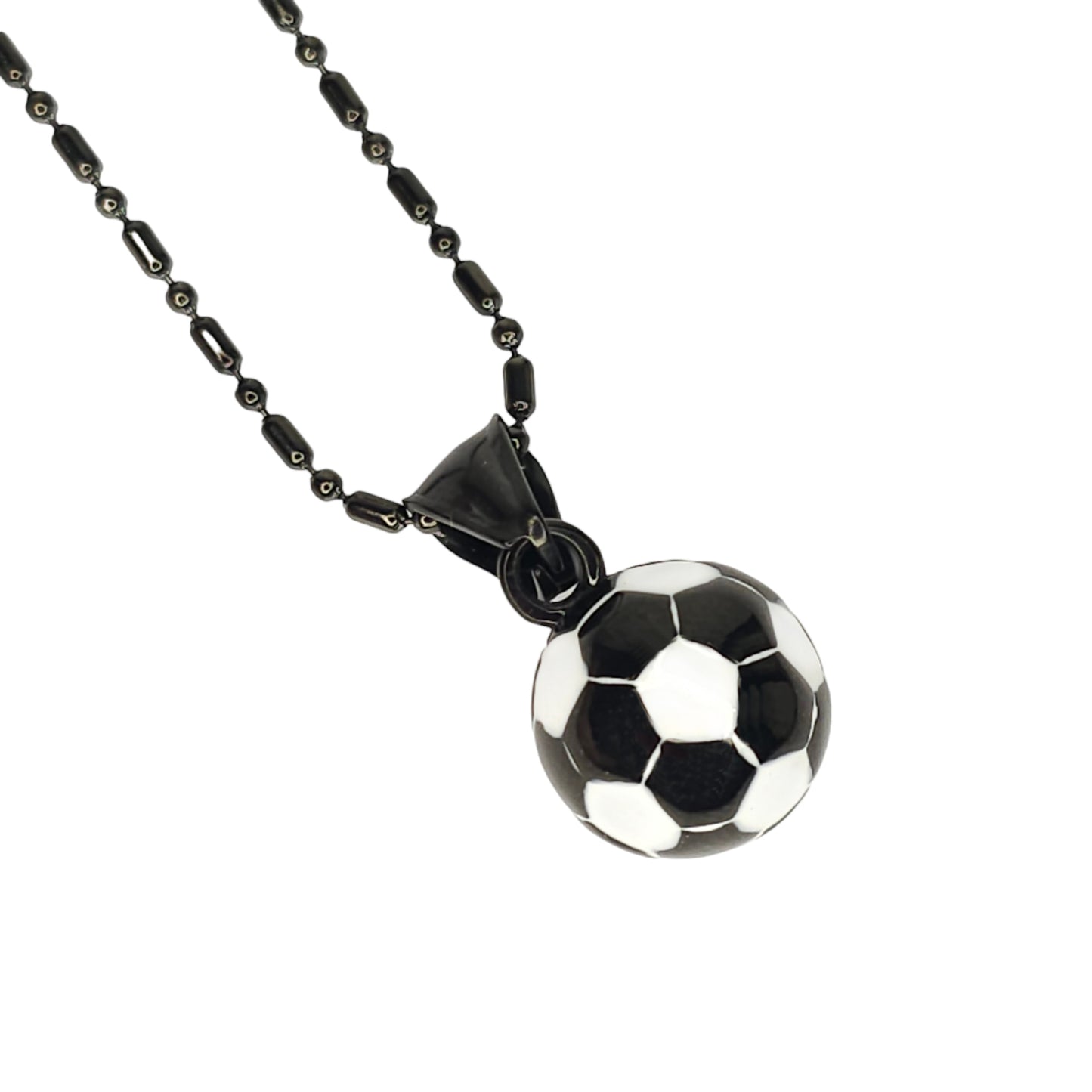 Μαύρο μακρύ μενταγιόν μπάλα ποδοσφαίρου από ανοξείδωτο ατσάλι.