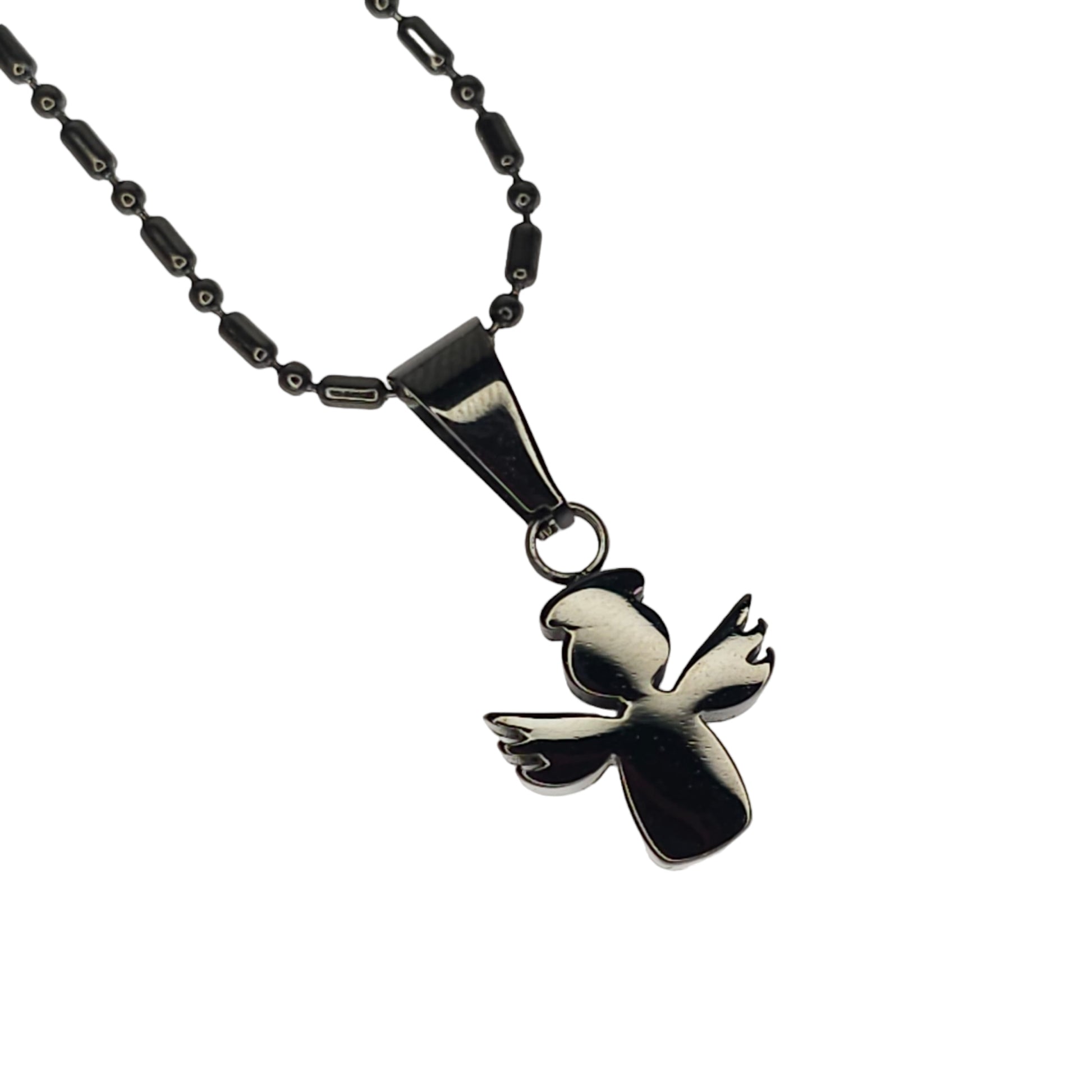 Μαύρο μικρό μενταγιόν αγγελάκι από ανοξείδωτο ατσάλι