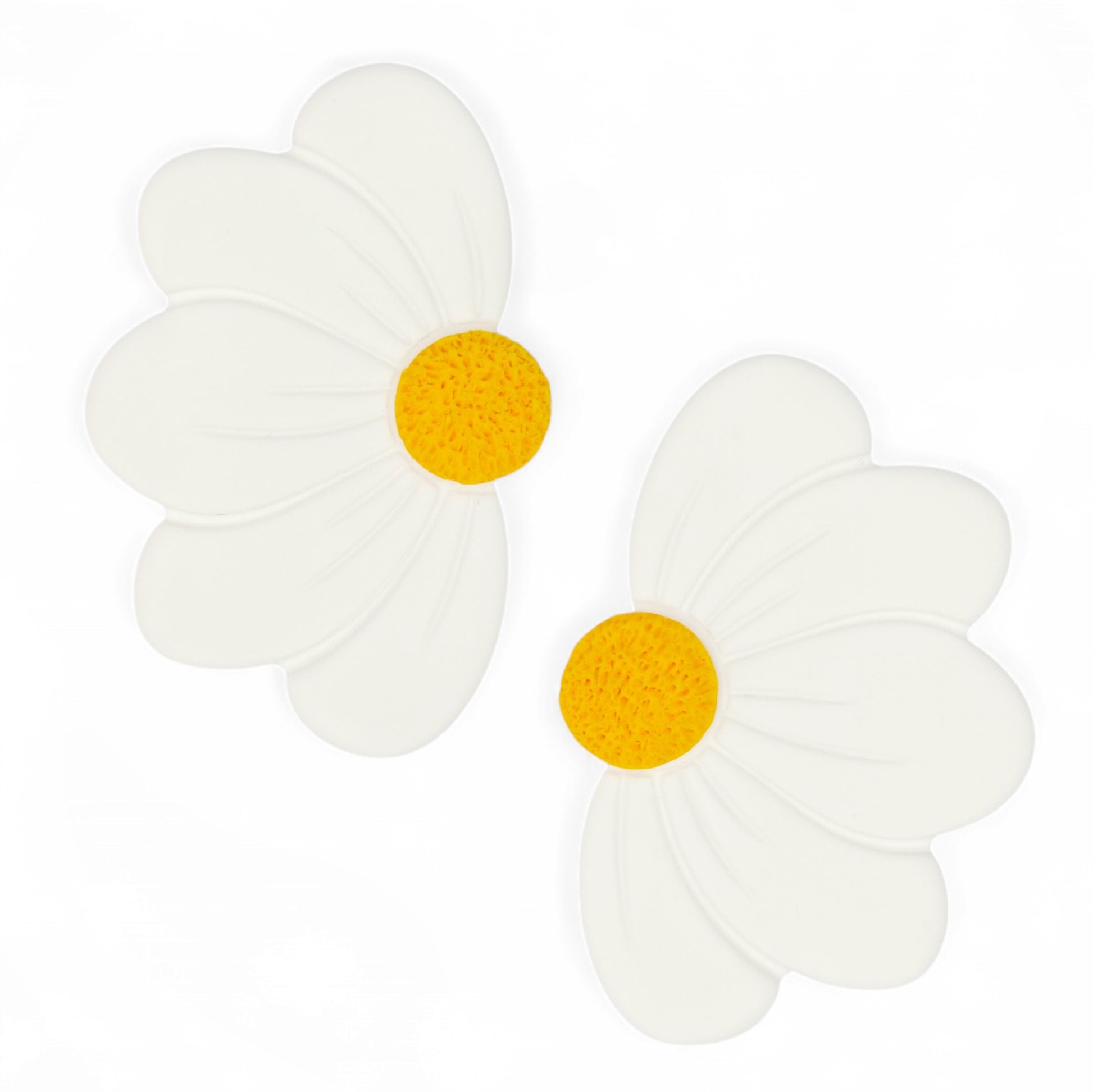 Μεγάλα καρφωτά σκουλαρίκια λευκά λουλούδια μαργαρίτες από πολυμερικό πηλό