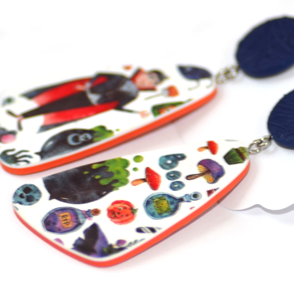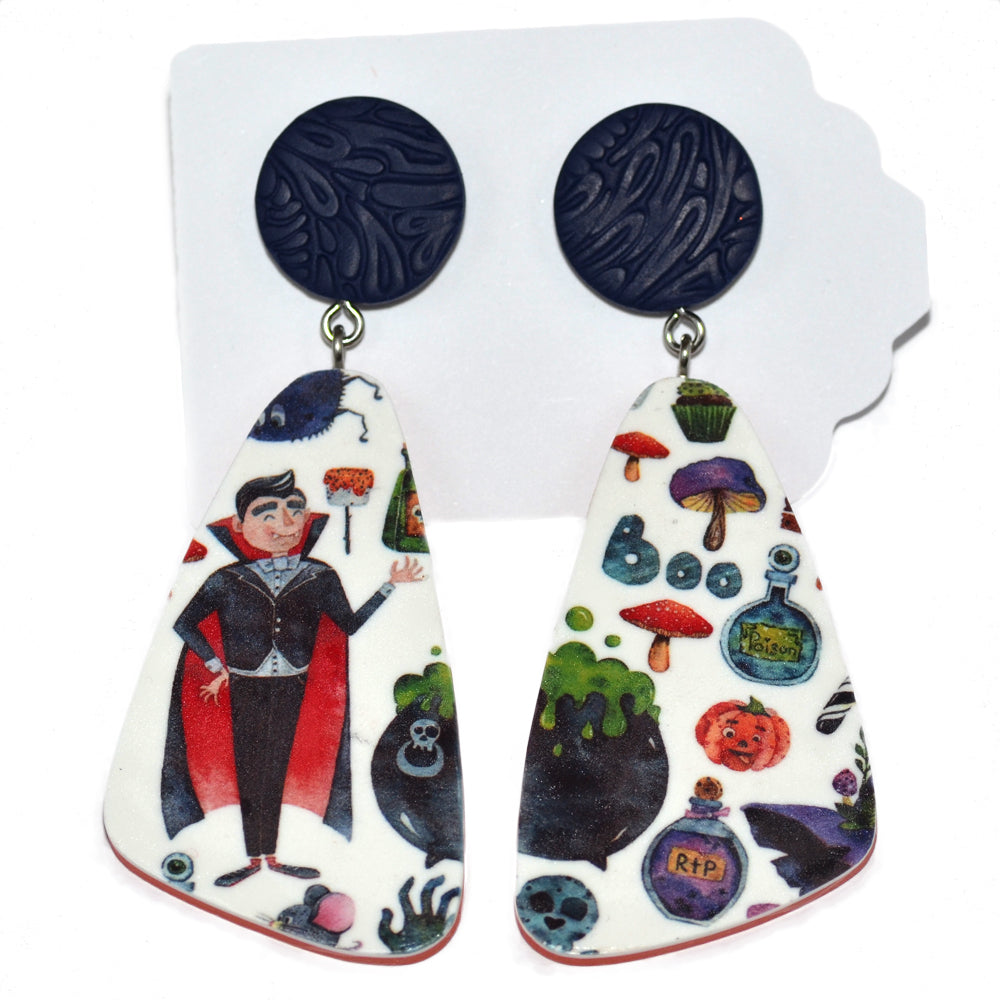 Μεγάλα κρεμαστά σκουλαρίκια με τον θέμα Halloween πολύχρωμα με μπλε