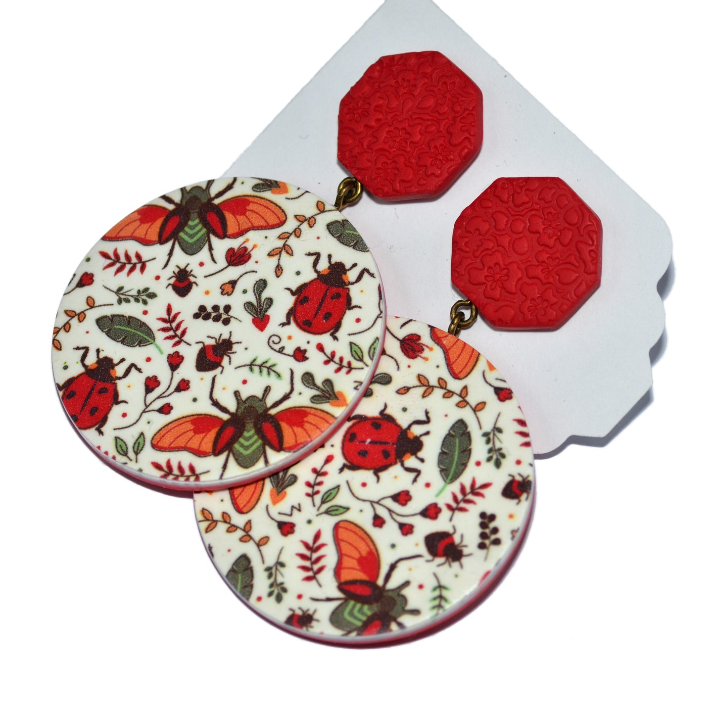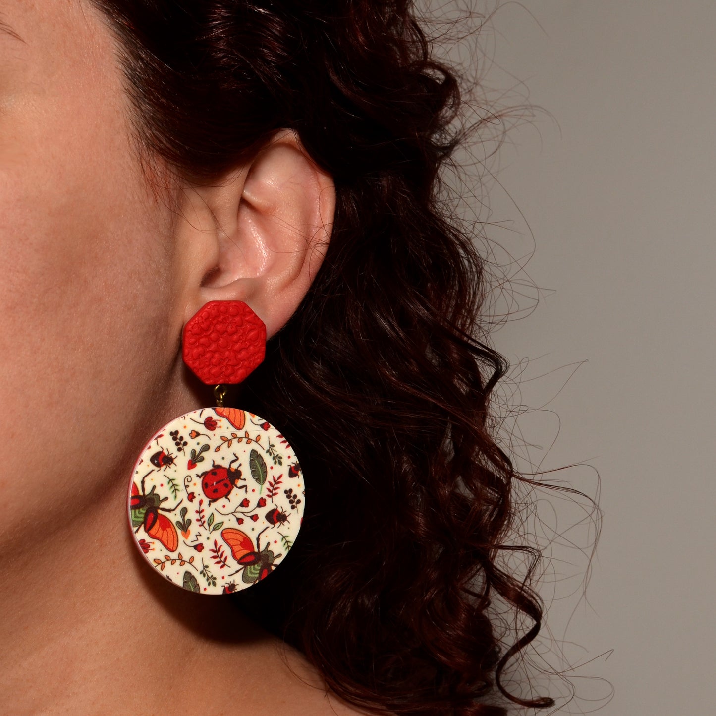 Μεγάλα κρεμαστά στρογγυλά σκουλαρίκια Ladies & bugs
