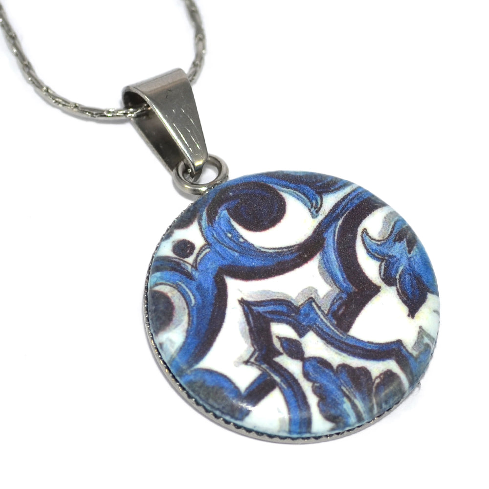 Κοντό μενταγιόν μπλε με ατσάλινη βάση και αλυσίδα από τη συλλογή Summer Blues.