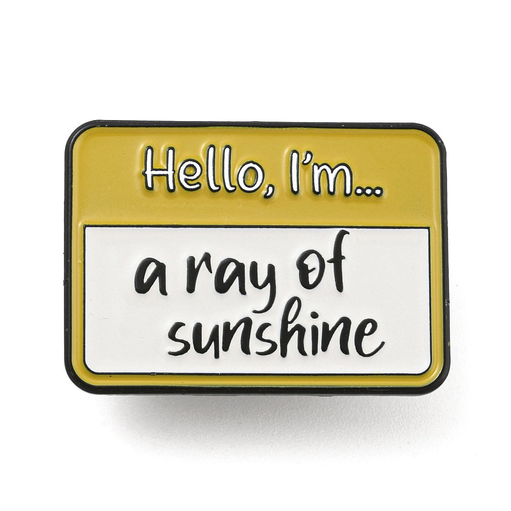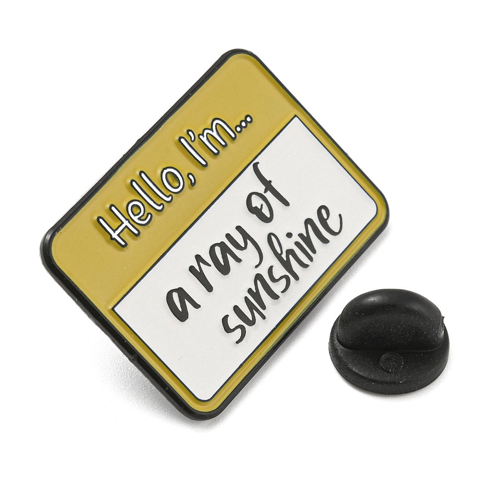 Μεταλλική καρφίτσα με σμάλτο κίτρινο ταμπελάκι "a ray of sunshine".
