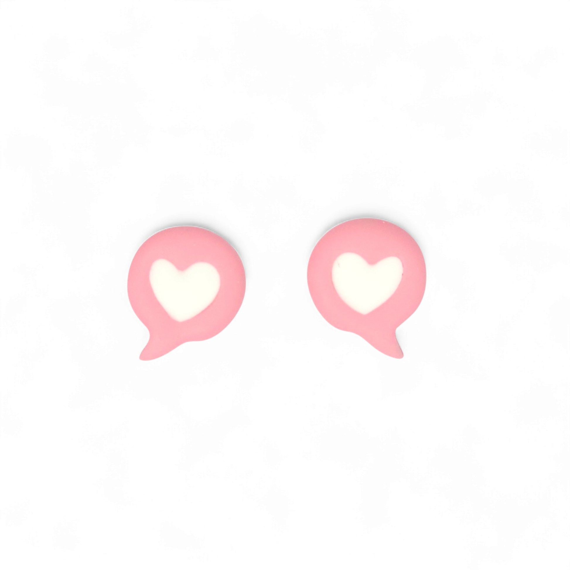 Μικρά καρφωτά σκουλαρίκια ροζ μηνύματα με καρδούλες από πολυμερικό πηλό.