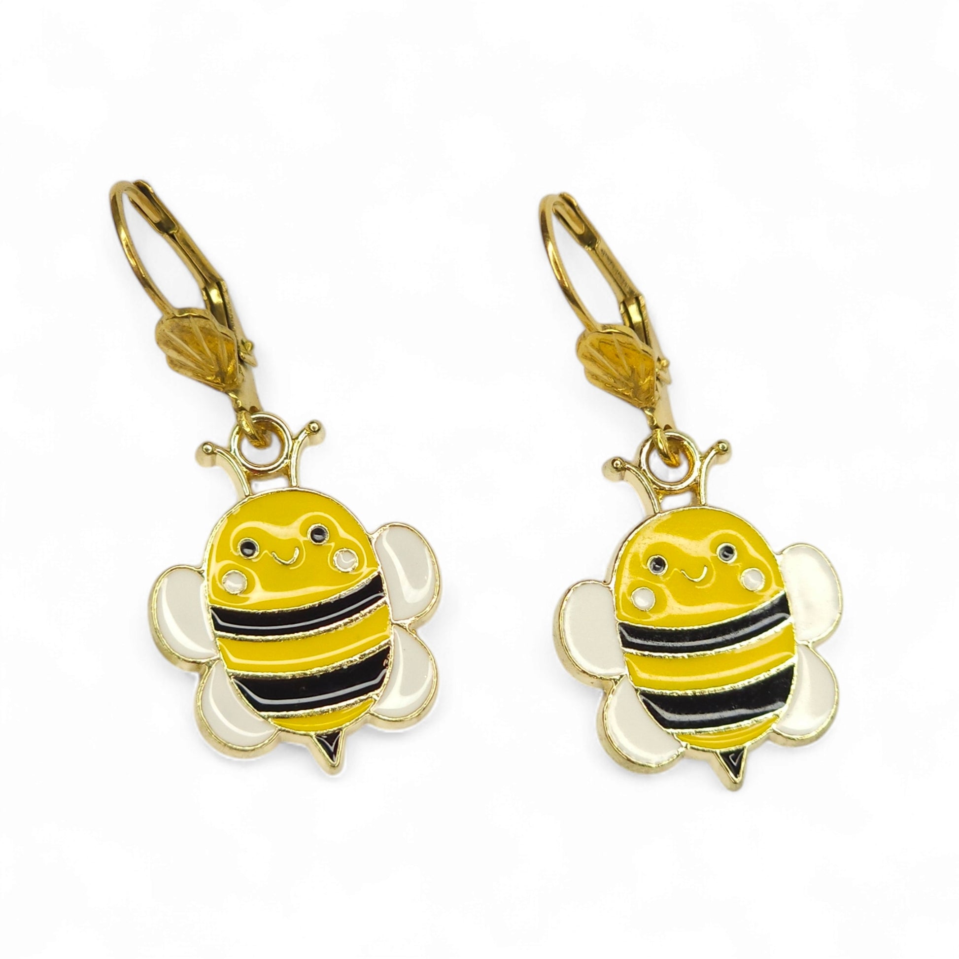 Μικρά κρεμαστά σκουλαρίκια κίτρινα μελισσάκια μέταλλο με σμάλτο .