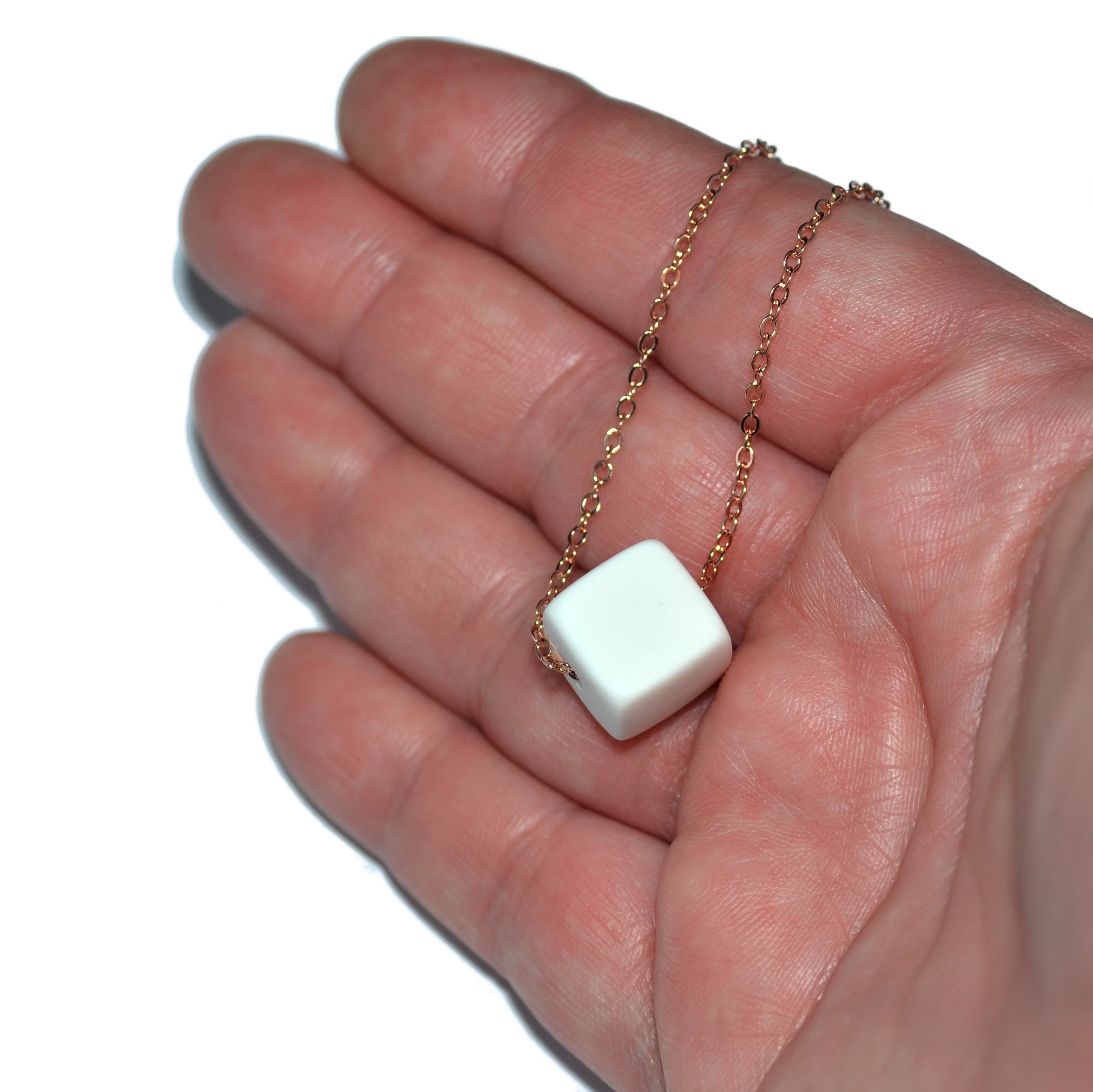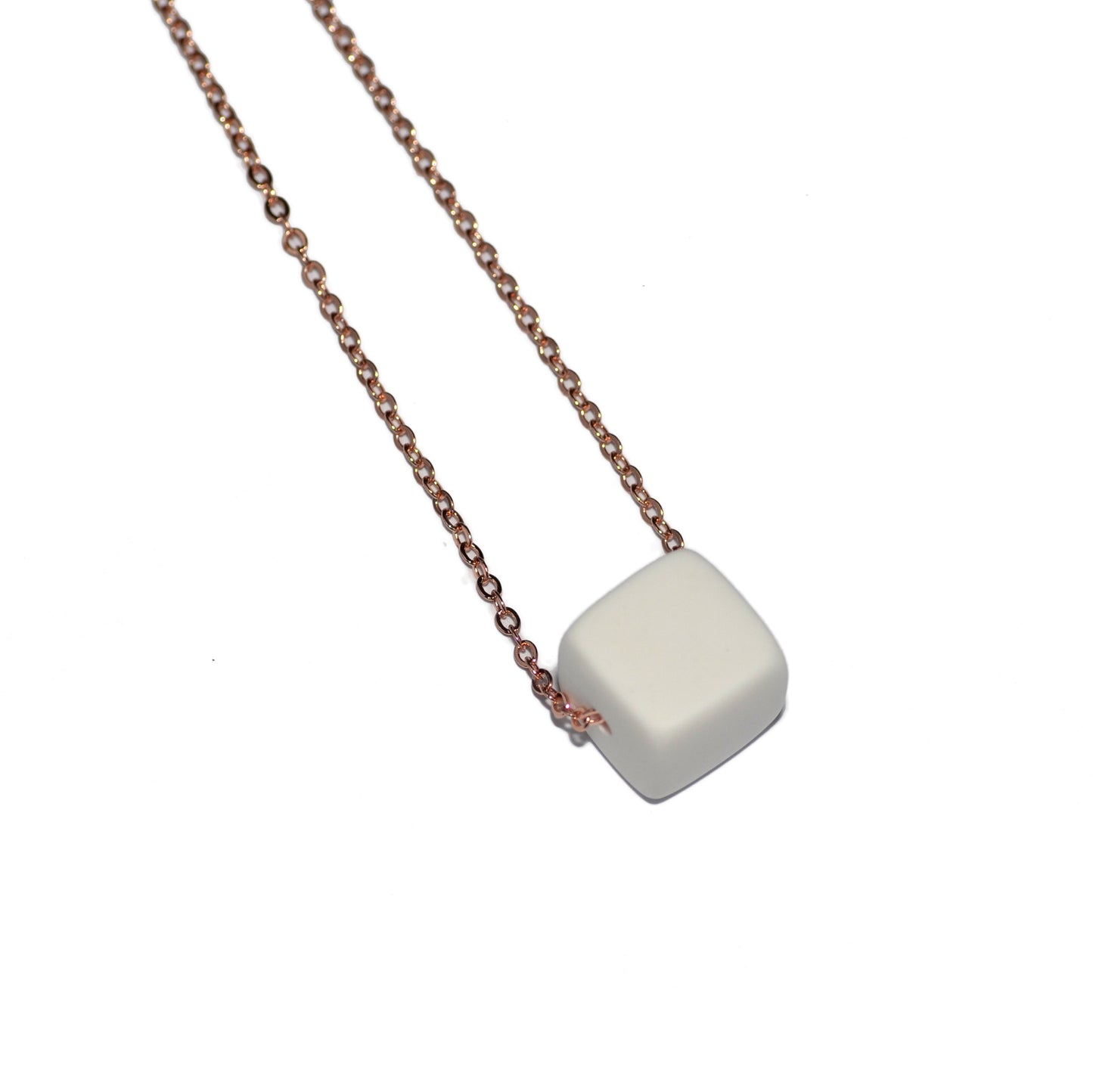 Μοντέρνο κοντό κολιέ κυβάκι λευκό με επιχρυσωμένη ατσάλινη λεπτή αλυσίδα