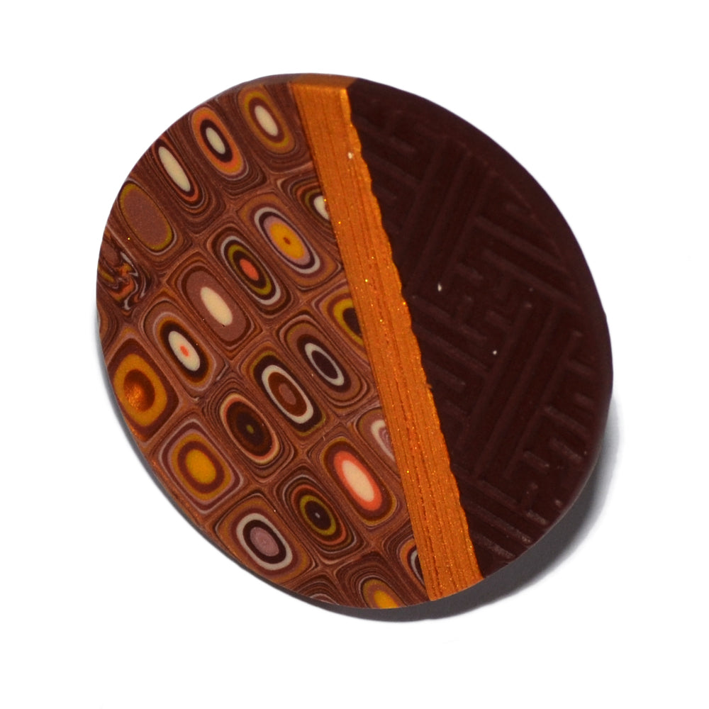 Πολύ μεγάλο στρογγυλό δαχτυλίδι ανάγλυφο καφέ λωρίδα χρυσό ρετρό αποχρώσεις