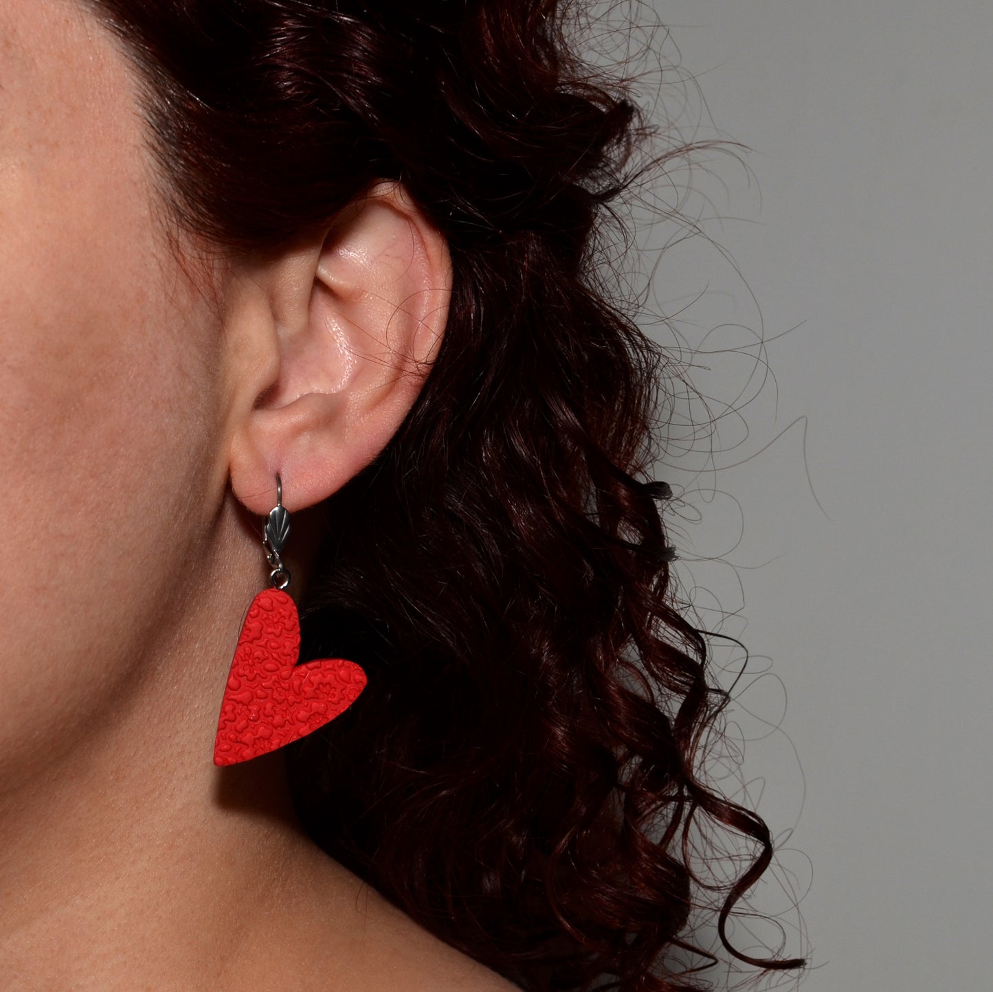 Σκουλαρίκια ανόμοια ψαράκι με ουρίτσα καρδούλα και κόκκινη καρδιά από πολυμερικό πηλό