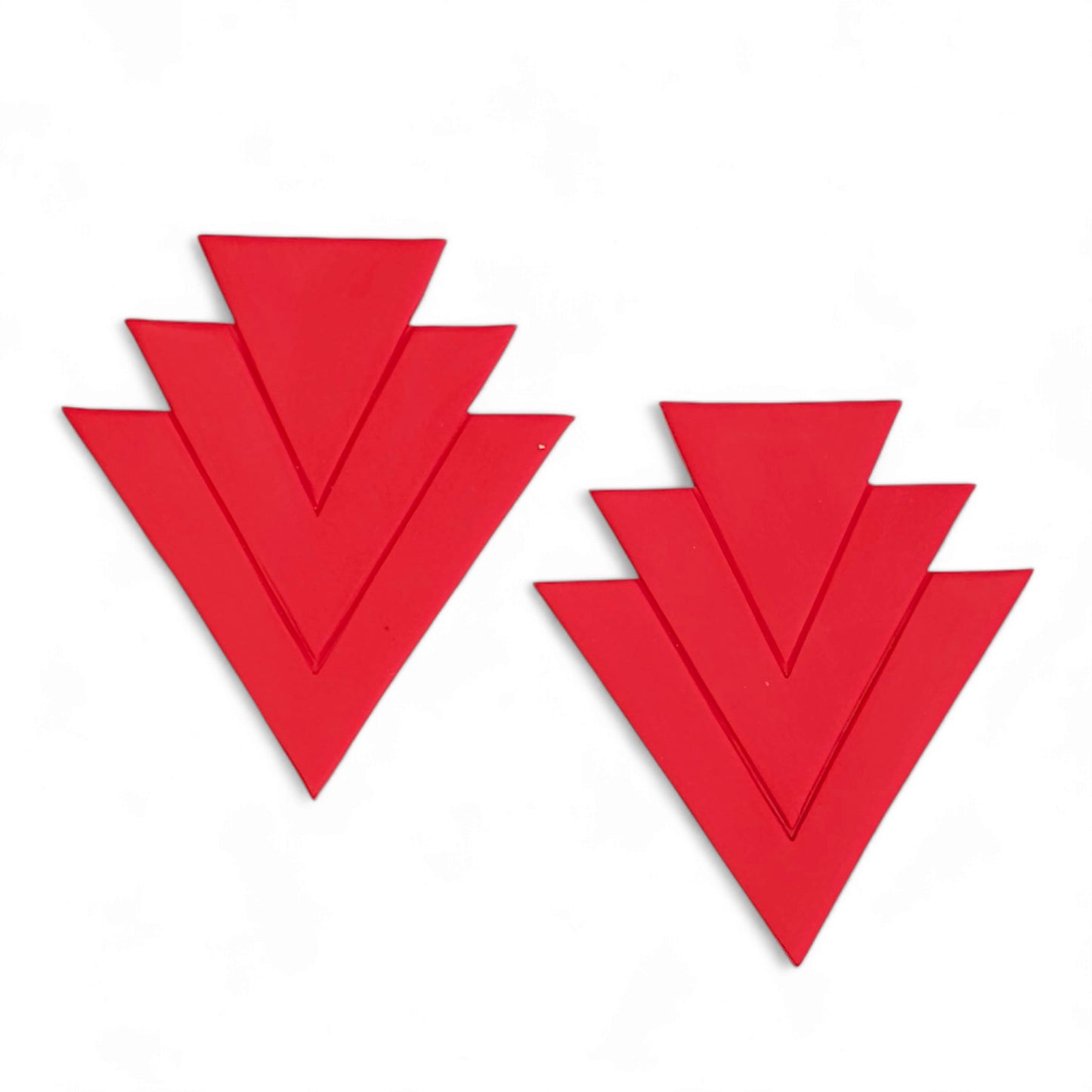 Σκουλαρίκια γίγας καρφωτά γεωμετρικά κόκκινα από πολυμερικό πηλό.