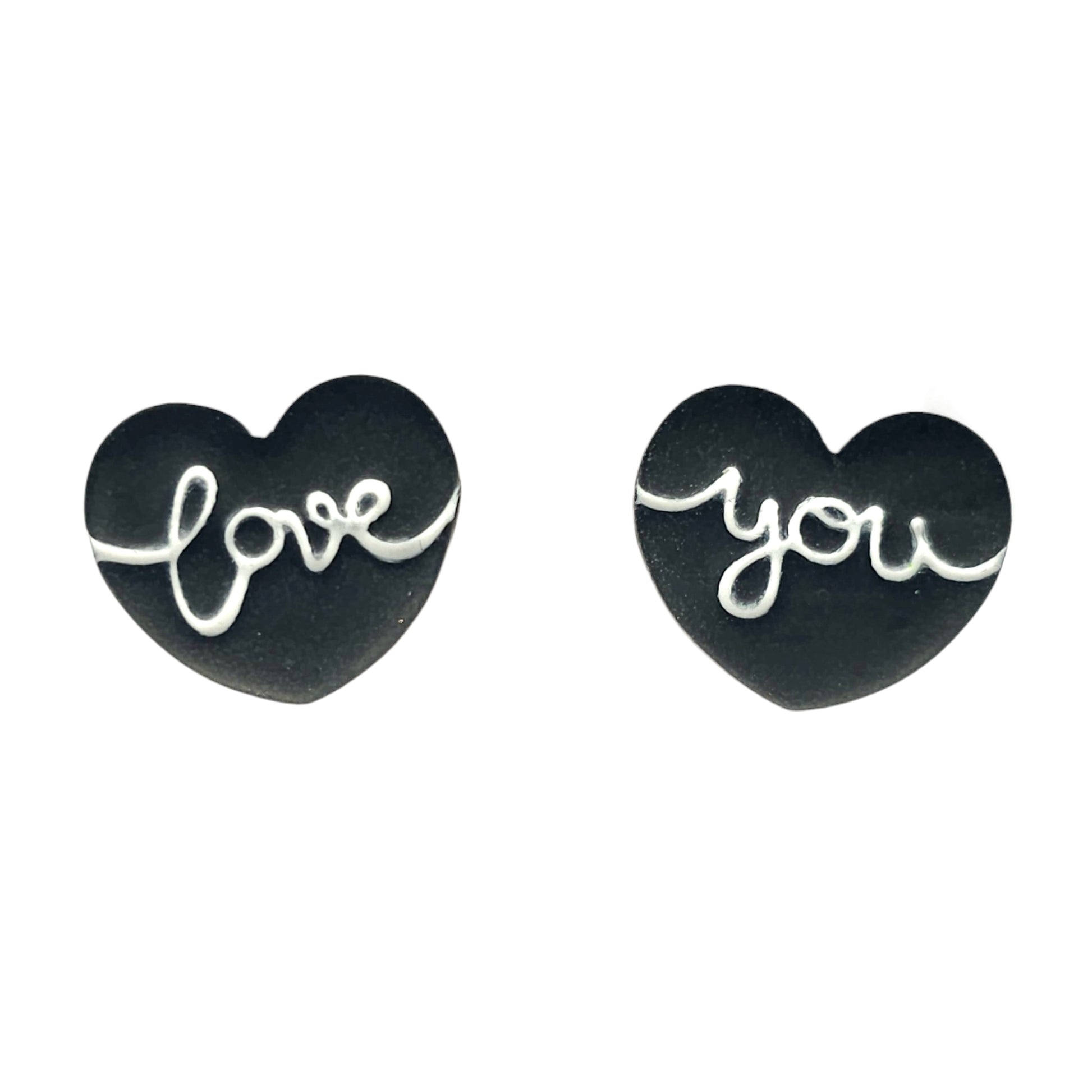 Σκουλαρίκια καρφωτά ανόμοιες μαύρες καρδιές love you με πολυμερικό πηλό.