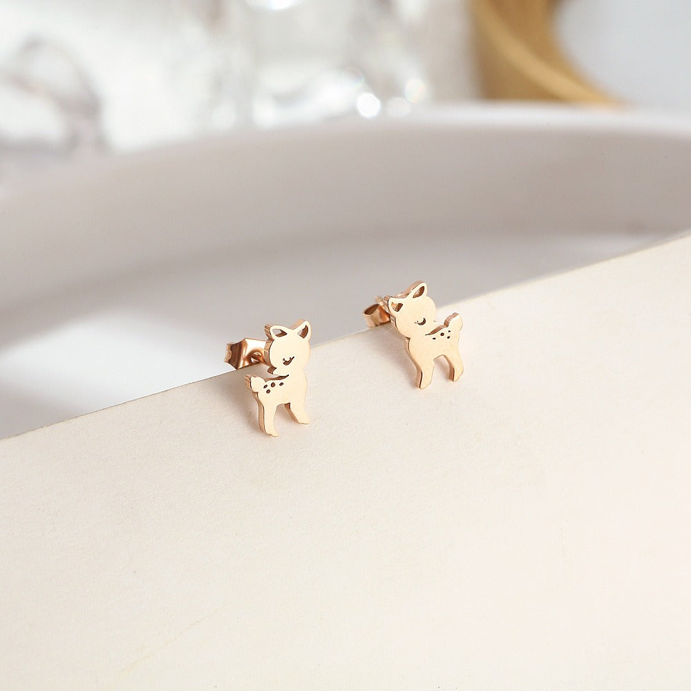 Σκουλαρίκια καρφωτά από ροζ επιχρυσωμένο ανοξείδωτο ατσάλι ελαφάκια